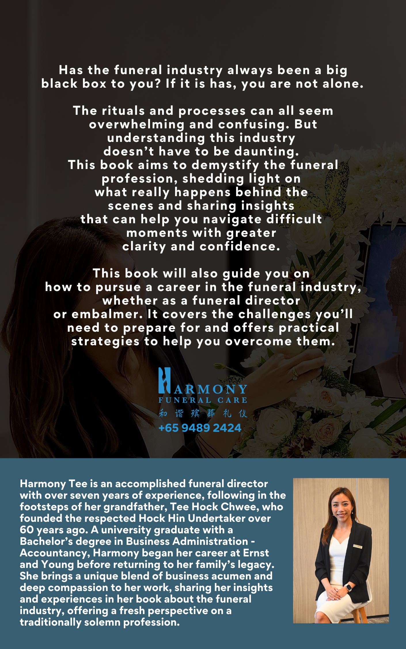 This is Singapore’s first book offering guidance on how to build a career in the funeral industry. If the funeral industry has always been a black box to you, you are not alone. The rituals and processes can all seem overwhelming and confusing. But understanding this industry doesn’t have to be daunting. This book aims to demystify the funeral profession, shedding light on what really happens behind the scenes and sharing insights that can help you navigate difficult moments with greater clarity and confidence. This book will also guide you on how to pursue a career in the funeral industry, whether as a funeral director or embalmer. It covers the challenges you’ll need to prepare for and offers practical strategies to help you overcome them.